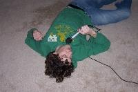 spent most of the song laying on his back trying to sing into the microphone which was on the ground somewhere in the vacinity. After the song I think that he threw up (thats just the reality, folks). I don't think that I have ever seen