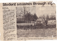 We got picked up by someone Norm knew so he held up a second while I grabbed the beer we had stashed in a roadside ditch. About thirty second into the ride I felt an explosive impact and saw a pinwheel of sparks and then the smell of burnt hair. Next thing I know i was lying by the side of the road with various internal injuries. But it's that smell of the burnt hair that was freaky, It came back years later when I passed by the site of the accident. |
